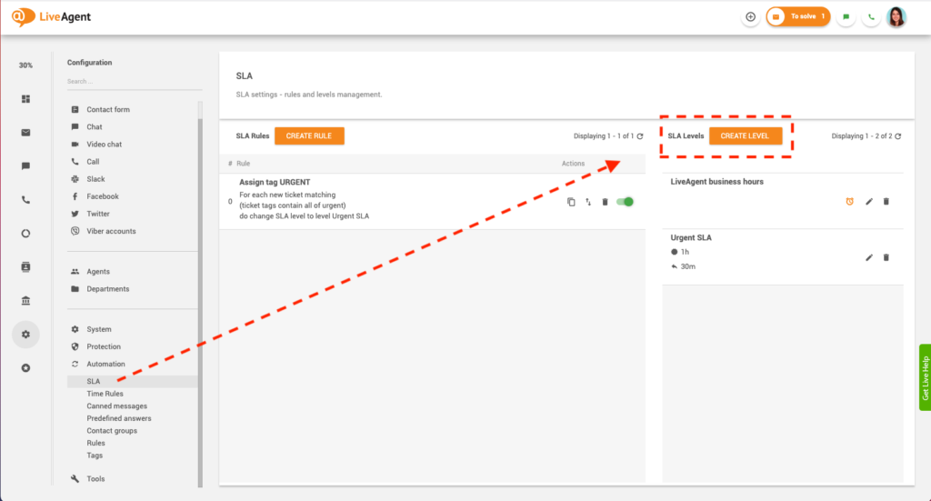 5. Denumiți-vă nivelul SLA 6. Bifați opțiunea „Timpii sunt definiți în cadrul orelor de lucru”