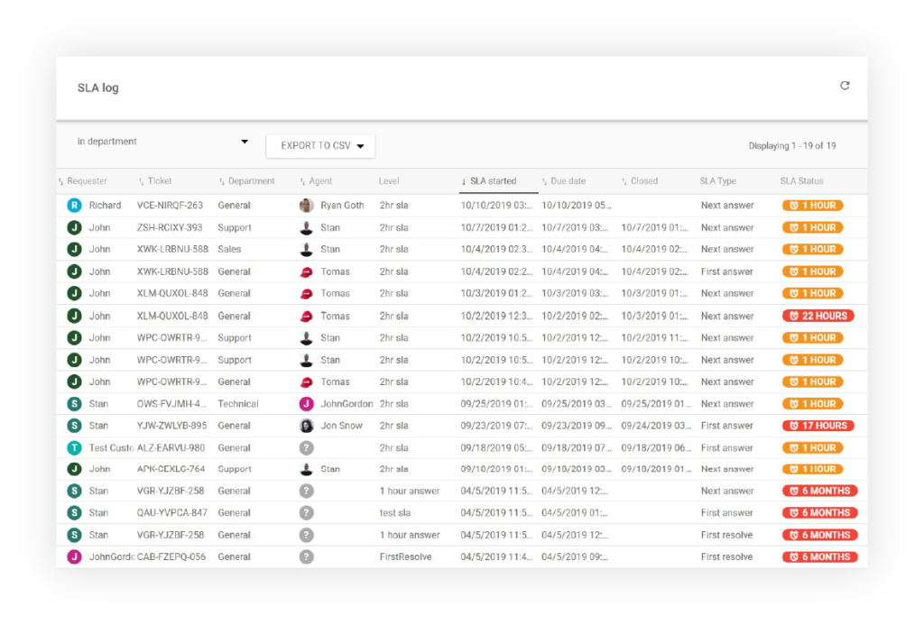 Prin configurarea orelor de lucru, nu veți risca ratarea termenelor-limită ale acordurilor la nivel de servicii. Agenții vor avea suficient timp să răspundă tichetelor clienților VIP, iar dumneavoastră nu va trebui să vă îngrijorați cu privire la penalizări (oricare ar fi acestea, în conformitate cu acordul dumneavoastră privind nivelul de servicii).