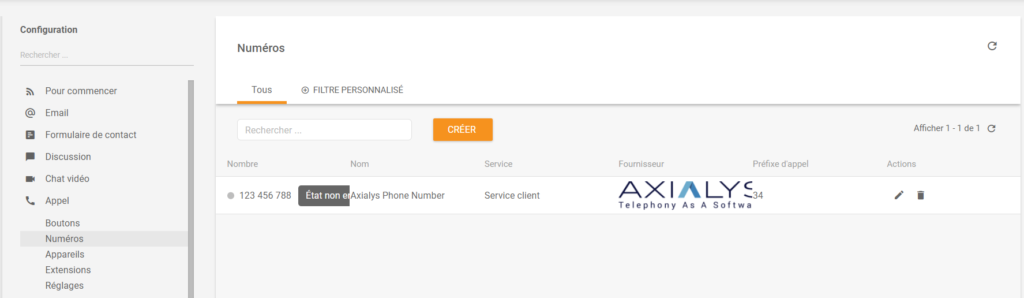 Numărul de telefon este setat în aplicația LiveAgent și poate fi utilizat deja. Dacă doriți, puteți adăuga mai multe numere de telefon în Axialys sau care aparțin altor furnizori de servicii VoIP.
