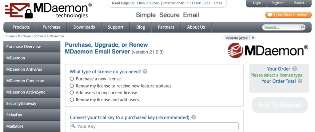 - Nu aveți încă MDaemon? Accesați site-ul lor de produse și începeți. Completați chestionarul scurt și obțineți un plan. Odată ce aveți codul produsului, puteți merge la pagina de documentație pentru a vedea ghiduri de utilizare și alte resurse. După ce ați terminat cu configurarea MDaemon, mergeți la contul dvs. LiveAgent.