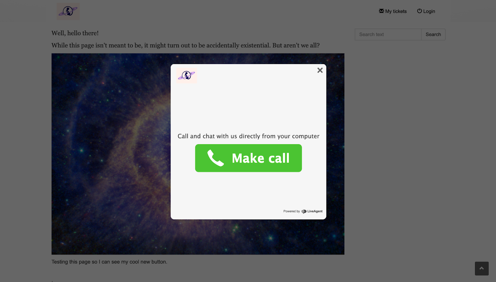 Făcând clic pe butonul Sunați-ne de pe pagina mea, s-a creat o fereastră pop-up cu text personalizabil, astfel încât puteți controla modul în care clienții vă percep serviciul chiar înainte de a iniția apelul.