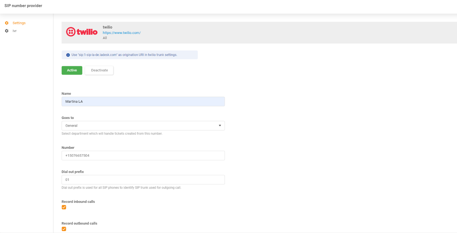 Aveam contul meu Twilio, așa că l-am integrat. Dacă nu ați configurat furnizorul VoIP, baza de cunoștințe a LiveAgent oferă un articol util care vă îndrumă prin acest proces.