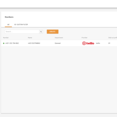 După ce m-am uitat în jur pentru o vreme, am fost gata să testez capacitățile de înregistrare a apelurilor LiveAgent. Bineînțeles, nu puteți înregistra apeluri dacă nu aveți un număr VoIP și un SIP trunking configurat. Nu vă faceți griji, LiveAgent oferă o multitudine de integrări pentru acest lucru, astfel încât, indiferent de furnizorul dvs. VoIP, există șanse mari ca LiveAgent să le acopere. Pentru a verifica care sunt cele pe care le puteți integra, accesați panoul agentului din partea stângă, faceți clic pe Setări > Apeluri > Numere și apoi apăsați pe butonul portocaliu Creare.
