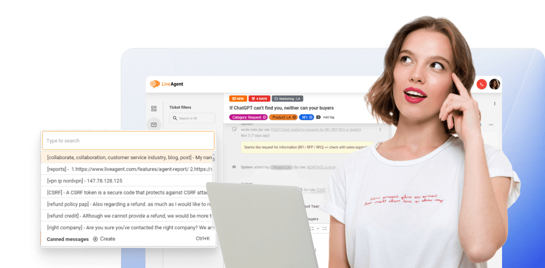 Economisiți timp cu șabloanele de ticketing ale LiveAgent, inclusiv răspunsuri pregătite și răspunsu...